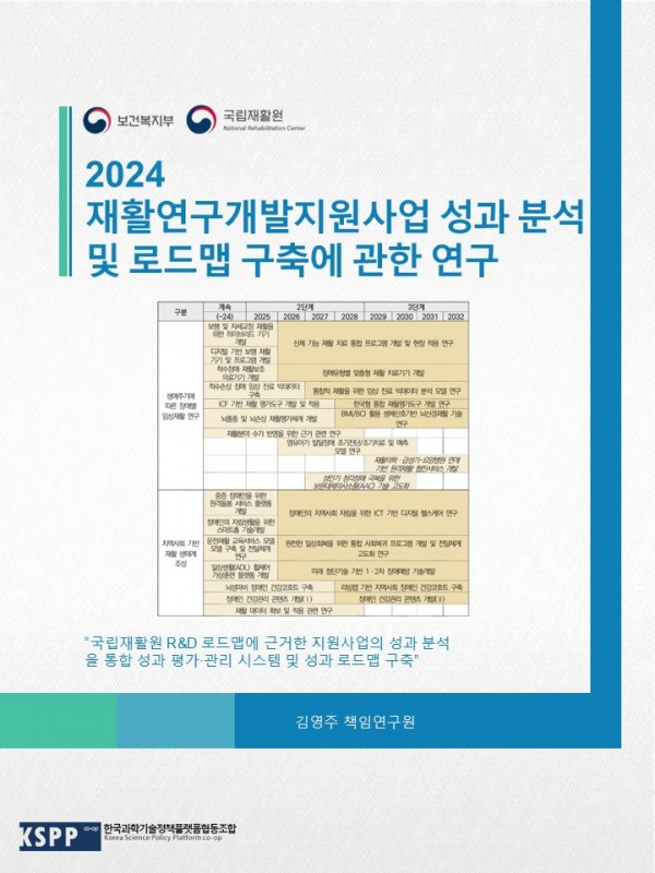 재활연구개발지원사업 성과분석 및 로드맵 구축에 관한 연구 관련링크 페이지 정보 작성일26-03-04 16:19 조회94회 본문 국립재활원 R&D 성과체계 및 성과로드맵 구축 이전글 다음글 목록